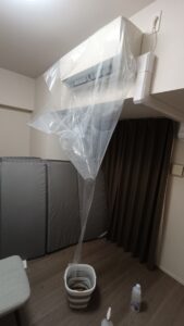 洗剤が飛び散らないようにエアコンを覆うビニールカバーも購入。